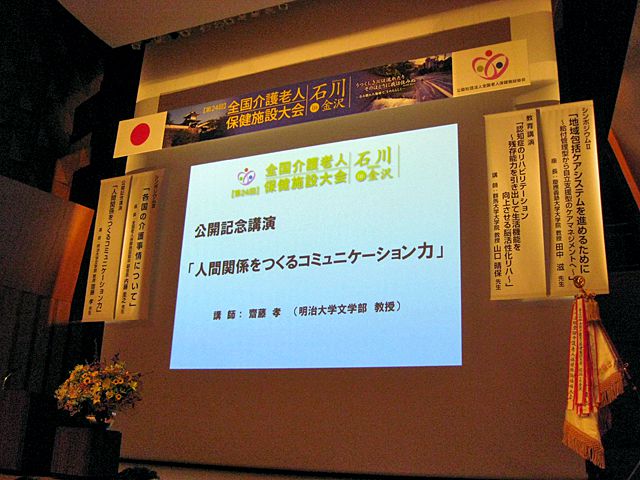 2013/08/25優勝は? 職員が一生懸命練習した余興をご評価いただきました。 1等は ボランティアさんの演奏 2等は 管理部門スタッフの 寸劇 3等は デイケアスタッフの大正琴演奏 でした。 多くの利用者様に見ていただき、たくさんの笑顔と笑い声をいただきました。 利用様の画像は載せられませんが、施設内に掲示する予定です。 お越しの際はご覧ください。 画像は順位発表の上條裕朗 社会福祉法人理事長