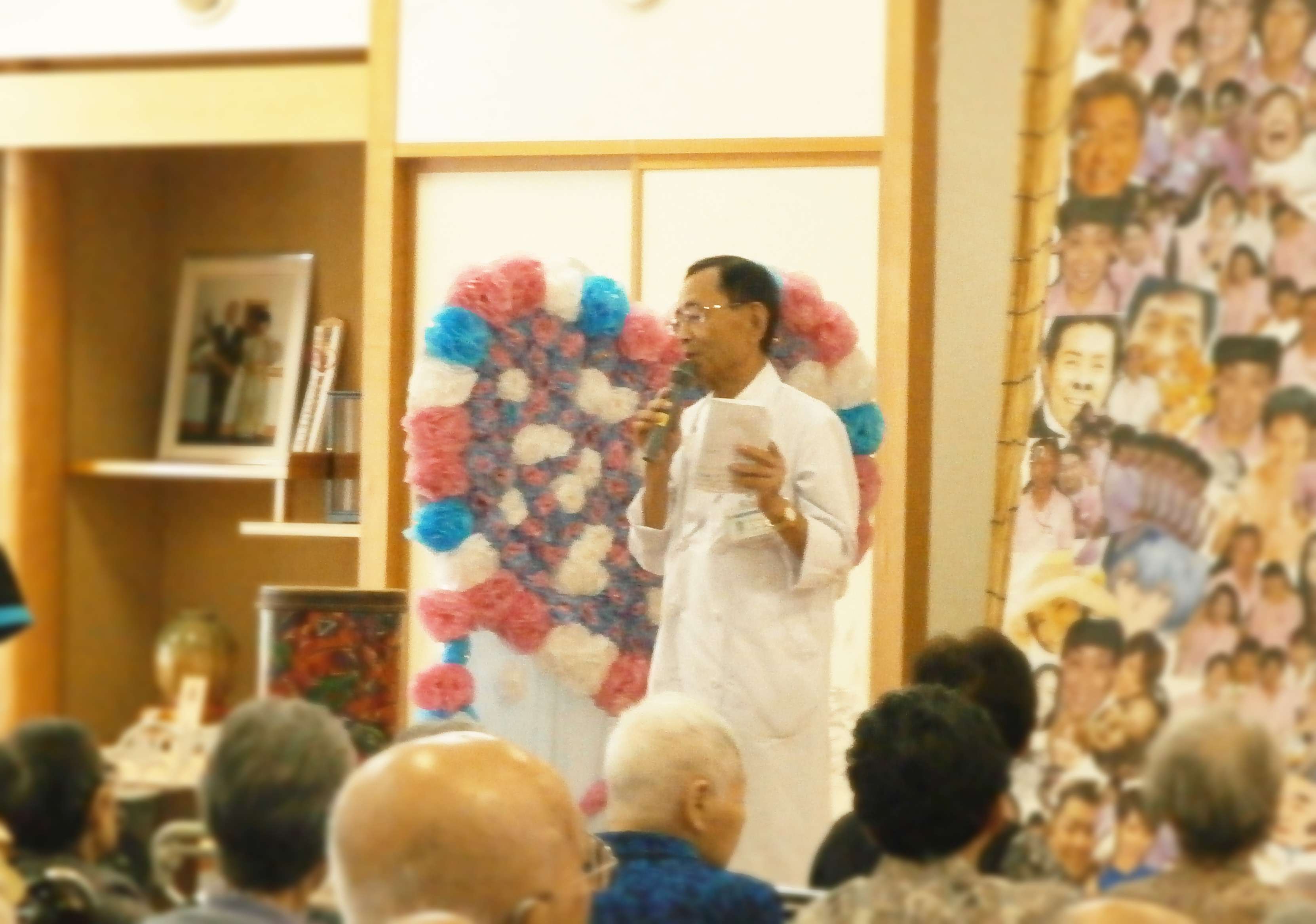 2013/08/25 優勝は? 職員が一生懸命練習した余興をご評価いただきました。 1等は ボランティアさんの演奏 2等は 管理部門スタッフの 寸劇 3等は デイケアスタッフの大正琴演奏 でした。 多くの利用者様に見ていただき、たくさんの笑顔と笑い声をいただきました。 利用様の画像は載せられませんが、施設内に掲示する予定です。 お越しの際はご覧ください。 画像は順位発表の上條裕朗 社会福祉法人理事長