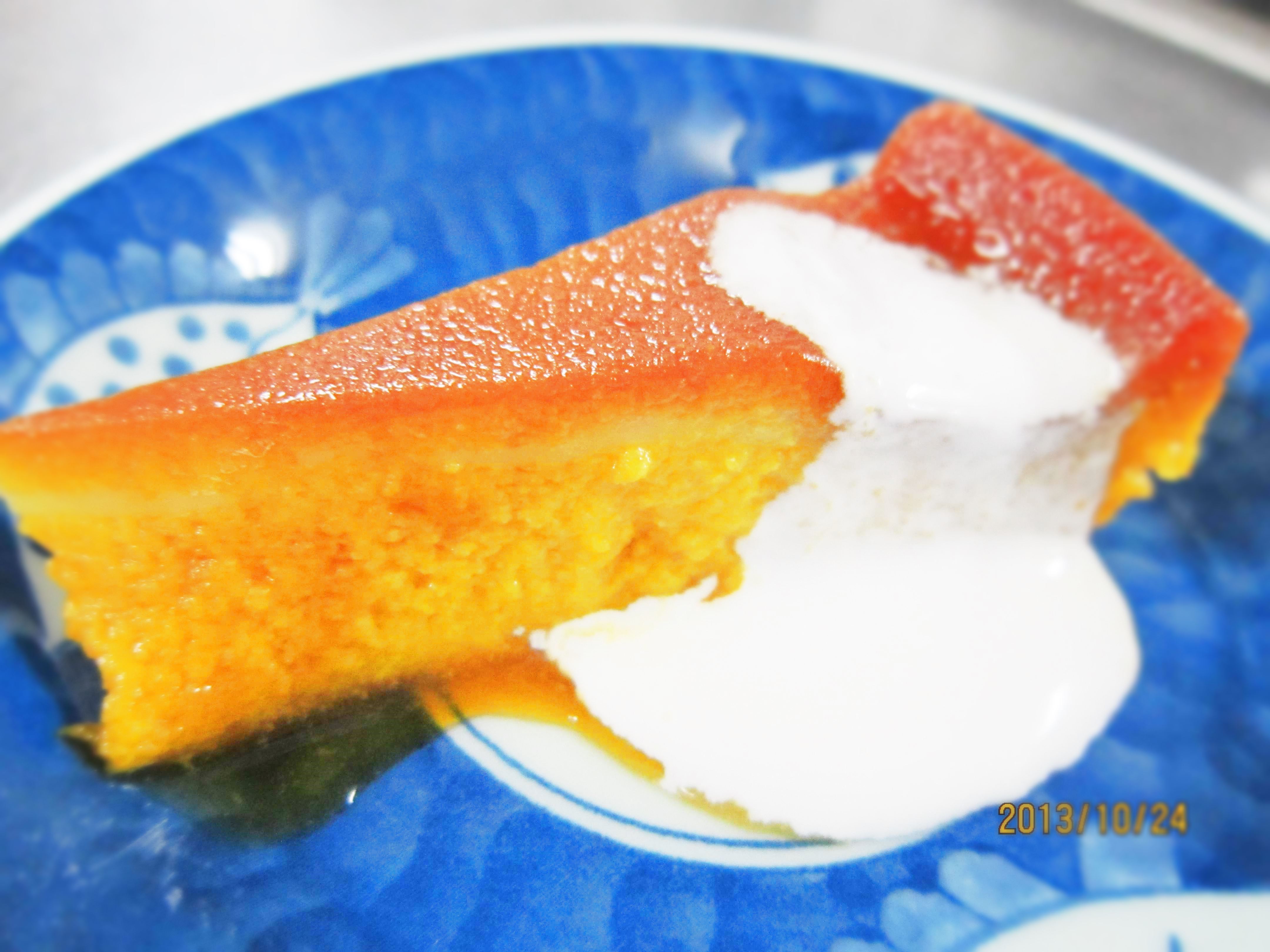ハロウィンにちなみ、かぼちゃのプリンを作りました。
