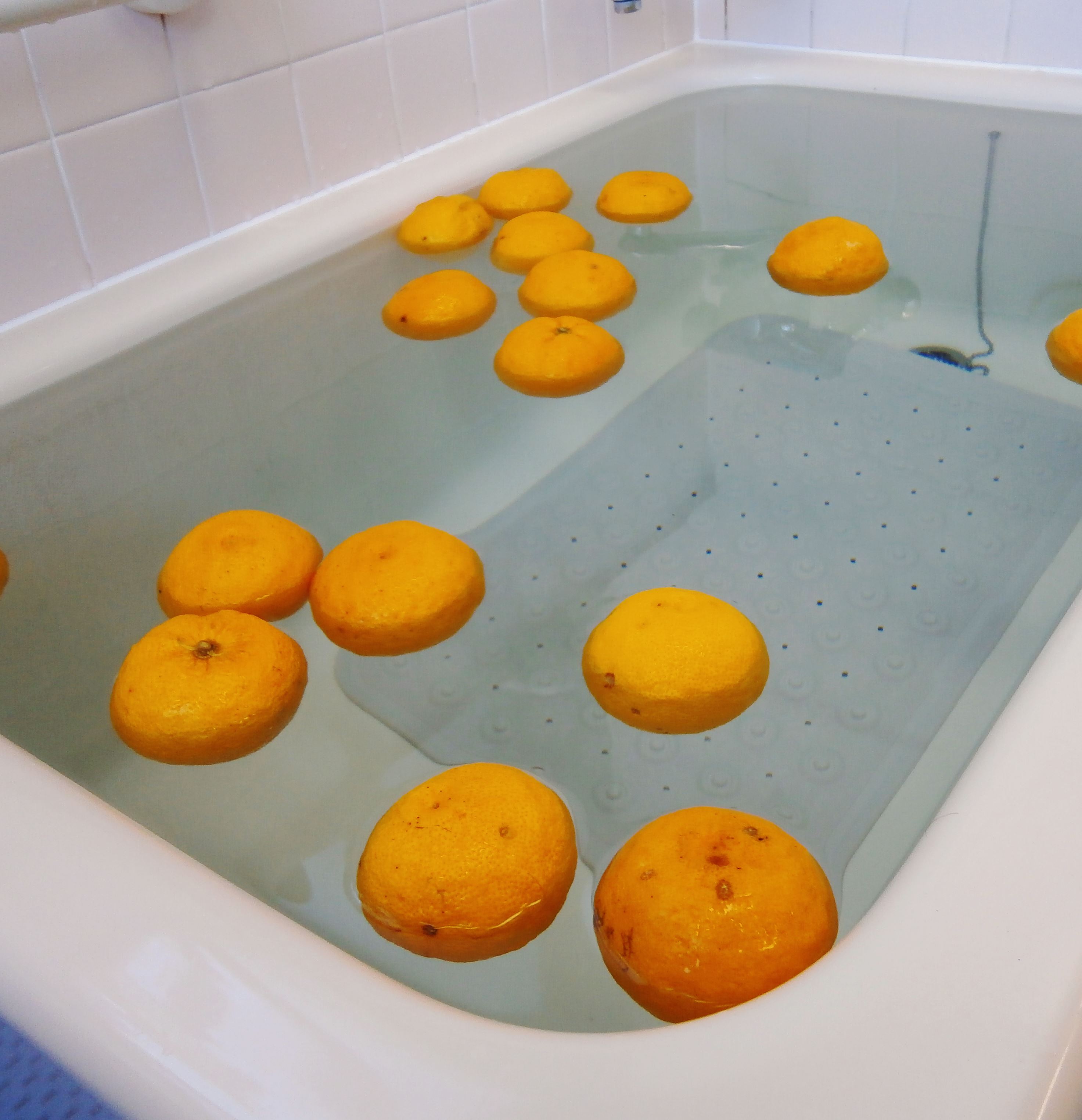 冬至の季節ということで、ゆず湯にしてみました。