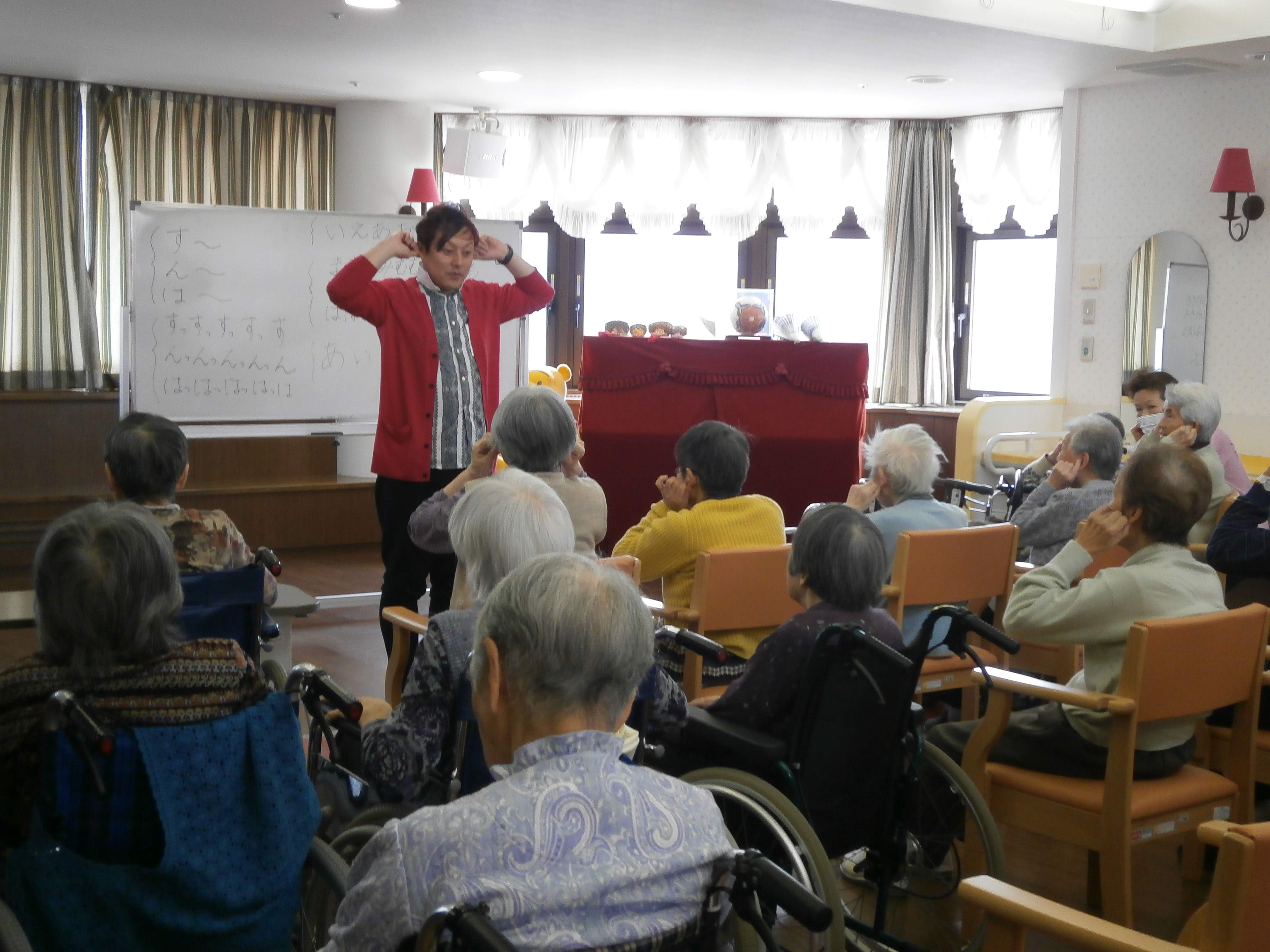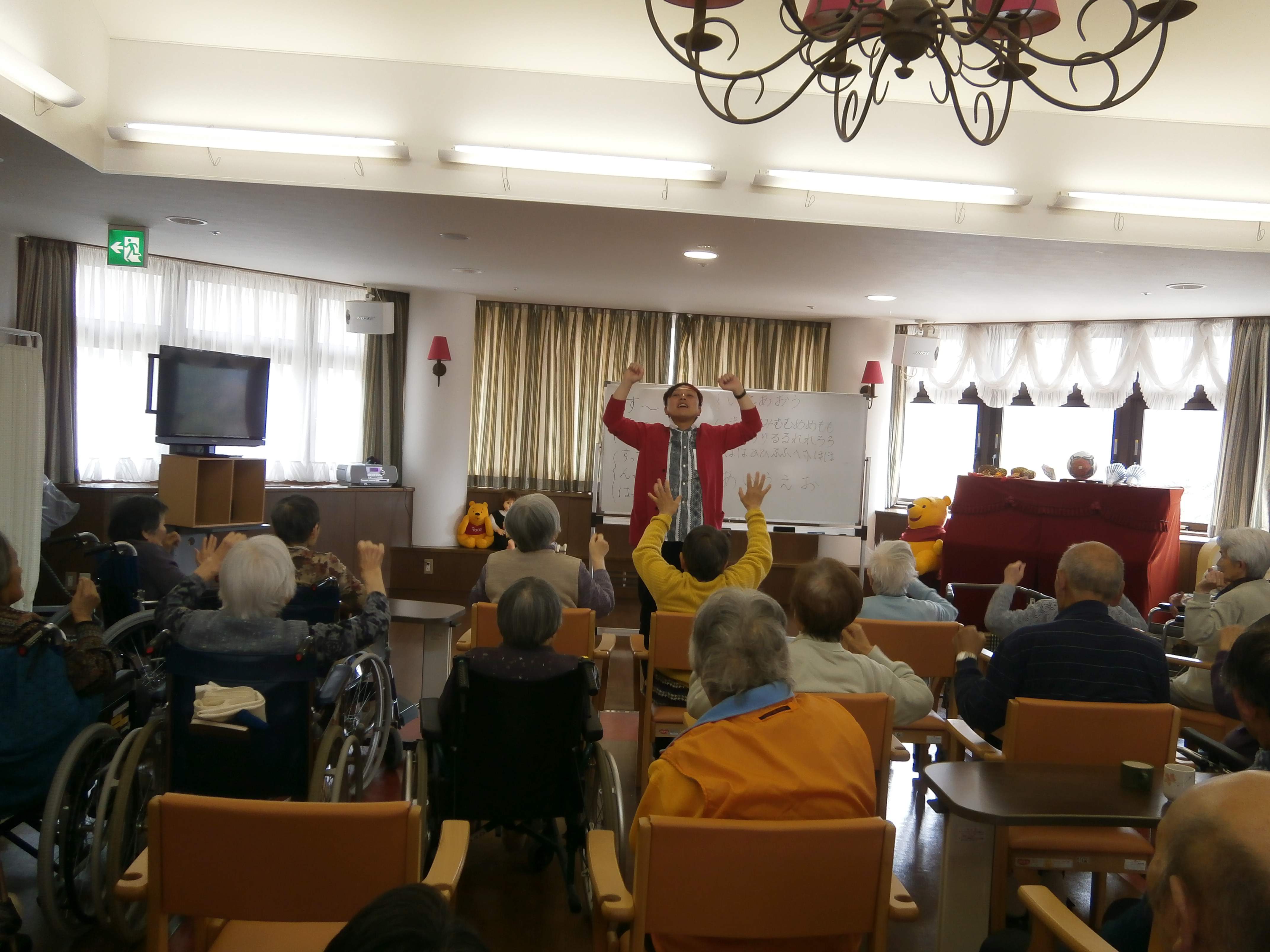 2014/04/27 4月16日 布野えいじ先生 音楽セラピー 今月も布野えいじ先生がショートステイに来てくださいました。 御利用者様も音楽に合わせて楽しそうに動いていらっしゃいました。 布野えいじ先生の明るい声を聞くと、ショートの雰囲気も一段と明るくなるようでした(*^_^*) ショート 小林