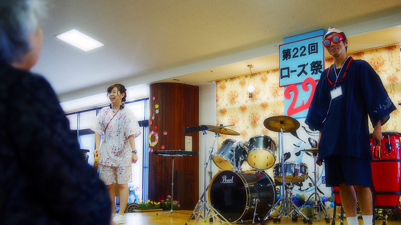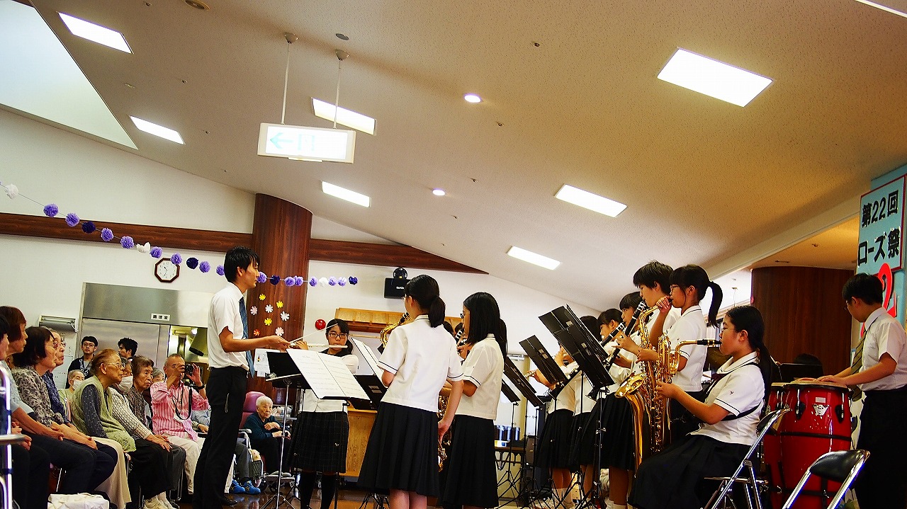 スタッフによる盆踊り才教学園様による吹奏楽演奏、近隣地域からご参加頂きましたローズカフェ参加者様による合唱、夏・秋を満喫できるお食事等をご用意させて頂きましたが、皆さまの笑顔、歓喜に施設スタッフ一同、嬉しさでいっぱいでした!!